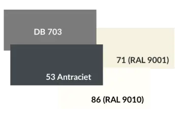 Met vier zorgvuldig geselecteerde kast- en lamelkleuren stelt u uw RayLux rolluik volledig naar wens samen. Perfect op elkaar afgestemd voor een stijlvolle uitstraling, duurzame kwaliteit en een harmonieus geheel dat naadloos aansluit bij uw woning.